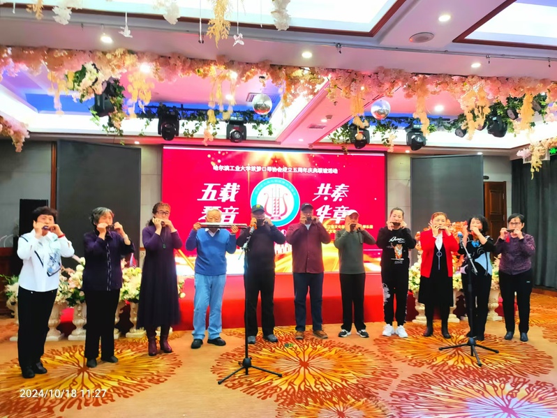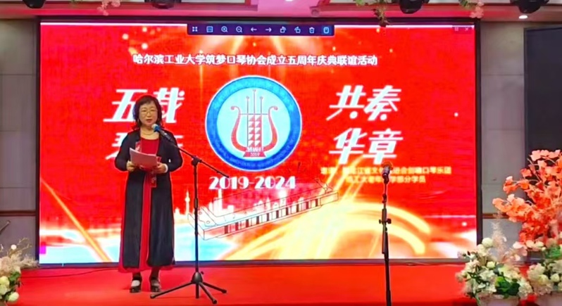 2024年10月18日上午10点,哈工大教职工筑梦口琴协会成立五年庆典联谊活动举行。协会会长杨莉老师主持庆典活动.