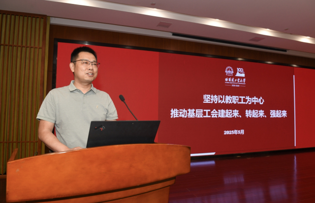 校工会常务副主席喻庆勇以《坚持以教职工为中心,推动基层工会建起来、转起来、强起来》为题,以打造一支“学习型、研究型、服务型”精干高效的专兼职工会工作队伍为支撑,从创新机制、下放权力责任;加强监管、下放工作资源;强化制度、规范基层工作流程;政策牵引、注重基层载体建设几个方面介绍了学校工会的工作做法和思考。