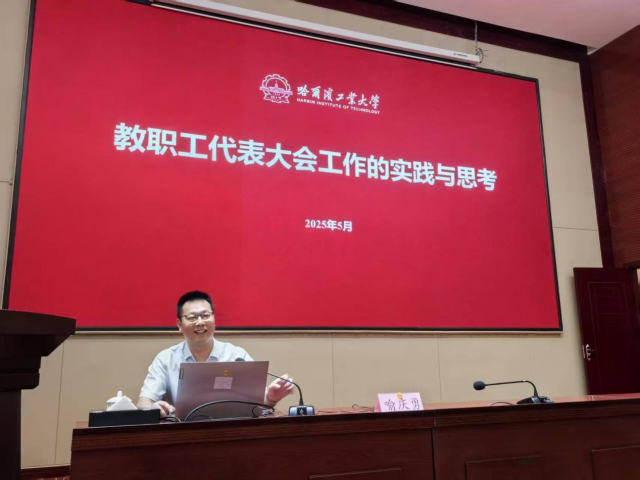 经上级工会组织推荐,受江西省总工会邀请,学校工会常务副主席喻庆勇同志以《教职工代表大会工作的实践与思考》为题,为2025年江西省高校工会主席培训班作授课交流。喻庆勇从教职工代表大会相关背景知识、哈尔滨工业大学教职工代表大会制度实践以及关于教职工代表大会的问题思考三个方面,为培训学员进行深入浅出的讲解,分享我校教职工代表大会工作经验,现场解答部分高校工会主席在教代会、工代会实践中遇到的问题和困惑,获得了培训班学员的高度认可和一致好评。