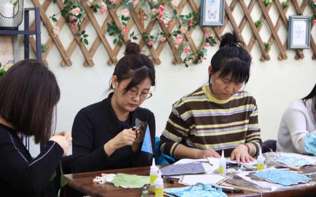 活动现场氛围轻松且温馨,参与活动的女教职工们时而互相交流灵感,时而向老师请教技巧,现场欢声笑语不断。“在忙碌的工作间隙能有这样一段轻松愉快的时光,既放松了身心,又收获了特别的节日礼物。”大家纷纷表示,在亲手制作的过程中不仅体验了非遗的古典浪漫,更收获了属于自己的节日精彩。