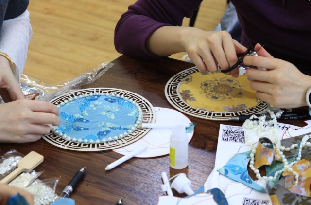 3月10日中午,30余位女教职工齐聚一堂,在管理楼414室度过了一段与非遗宋锦和传统团扇对话的午间时光。这是由校工会主办、经管学院工会承办的宋锦团扇手工制作活动。环境学院王一婷老师作为主讲人,带领女教职工们亲手制作宋锦团扇,共同感受非遗魅力。
