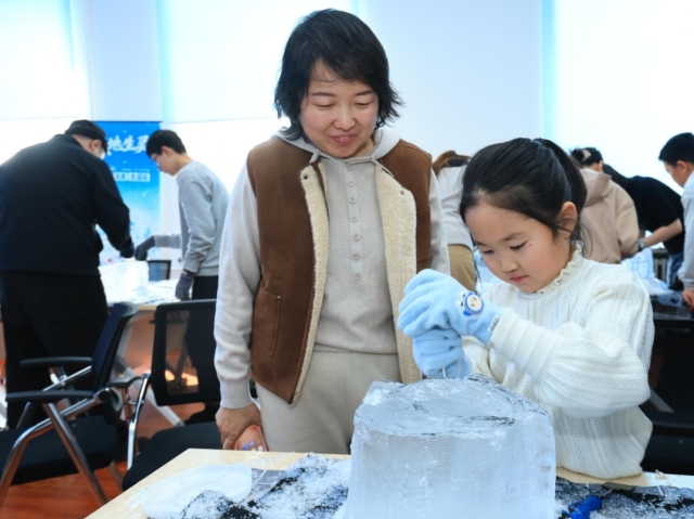 1月30日上午,由校工会、继续教育学院青少年教育项目中心联合主办的教职工子女冰雪艺术创作实践活动在土木楼103教室举行,15组教职工家庭参与。
